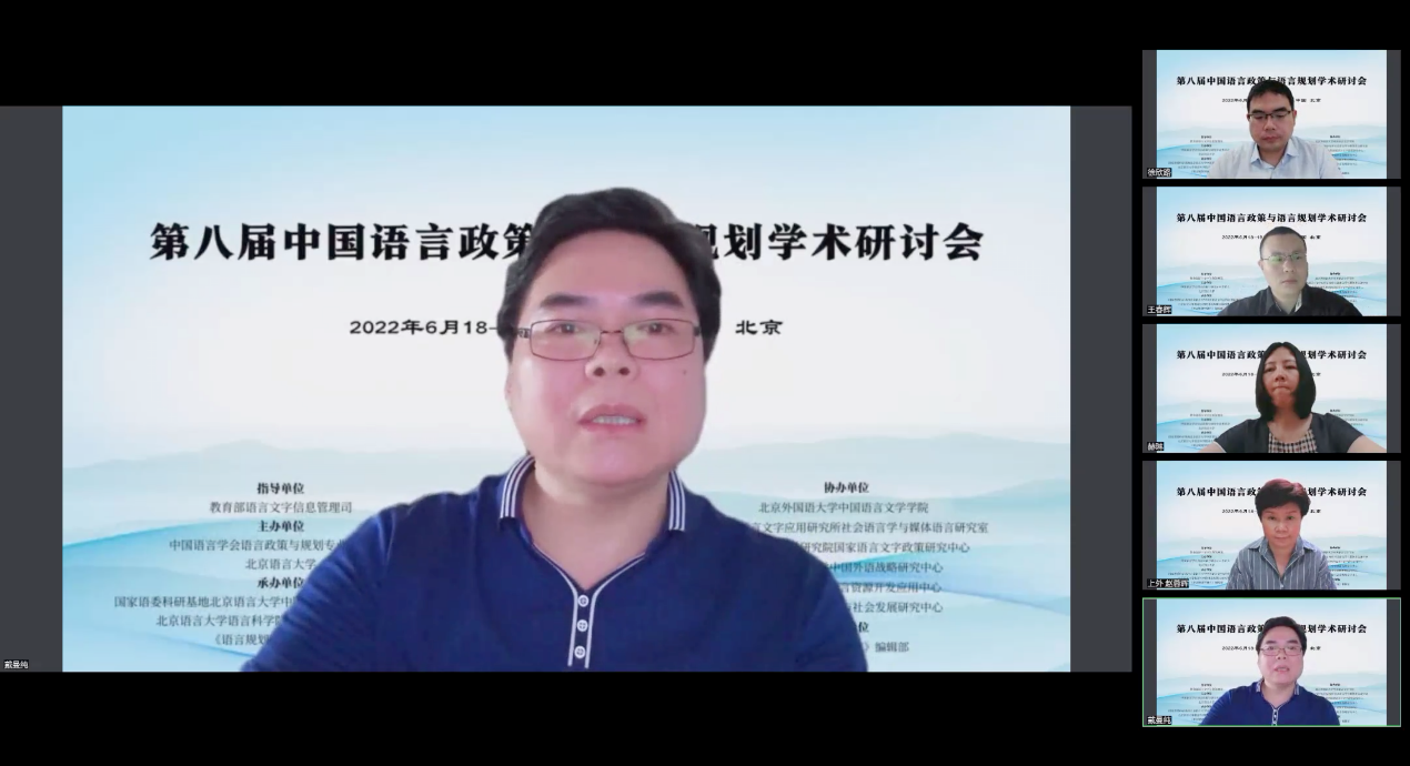 2022年6月18日至19日,第八届中国语言政策与语言规划学术研讨会以线上会议的形式召开。会议由教育部语言文字信息管理司指导,中国语言学会语言政策与规划专业委员会和北京语言大学联合主办,国家语委科研基地北京语言大学中国语言文字规范标准研究中心、北京语言大学语言科学院语言政策与标准研究所、《语言规划学研究》编辑部承办,beat365中文官方网站beat365中文官方网站等六家单位协办。会议还得到《语言战略研究》编辑部的支持。