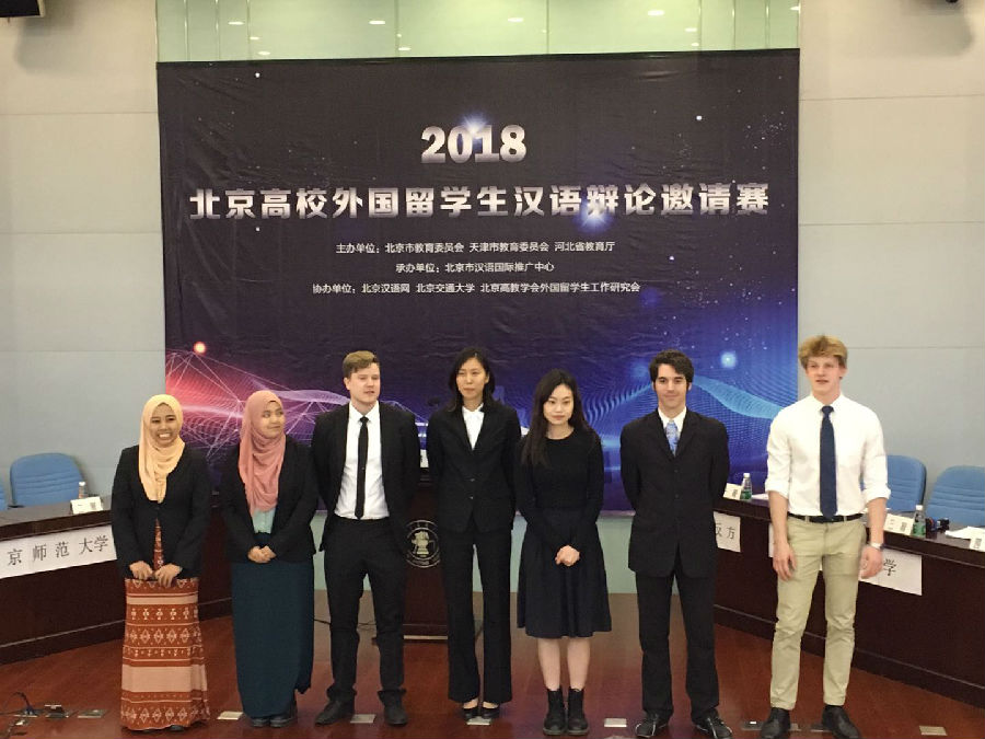 2018年4月15日上午,beat365中文官方网站留学生辩论队参加了在北京交通大学举行的2018北京高校留学生辩论大赛初赛。经过一个半小时的激烈鏖战,北外战胜北京师范大学,顺利晋级,将于下个月与北京中医药大学进行复赛的角逐。北京高校留学生辩论赛每两年举行一次,参赛队伍主要由北京市开展留学生教育的18所著名高校组成,其中包括北京语言文化大学、北京师范大学、对外经济贸易大学等高校。北外在前两届竞赛中,分别取得第三名、第二名的成绩。