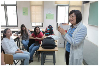 联谊从下午三点正式开始,学生分成五个小组分别在孙琳、刘美仪、佟雪婷、岳瑶和梁冬梅老师的带领下在不同的教室进行活动。本次联谊分为两个部分:前一个小时为自由交流,学生随机组成小组交流,话题从初次见面的寒暄问候到在北京的日常生活;后一个小时老师们组织学生开展了丰富有趣的语言游戏竞赛,如筷子夹花生比赛、“萝卜蹲”、“你画我猜”、“拍手说词”、“击鼓传花”等游戏,在这一环节中,学生表现十分积极,联谊的氛围达到了高潮。游戏过程中,我们还为每位参与活动的学生准备了有中国特色的皮影和剪纸作为礼品。活动最后大家互留了联系方式,联谊活动在十分愉快的氛围中结束。