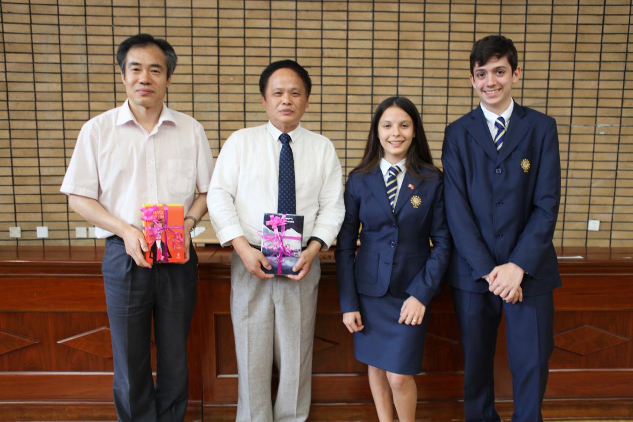 接下来,学生代表发言,向北外beat365中文官方网站的领导、老师们表示感谢,并和我们分享了他们在中国的经历和感受,表达了浓浓的不舍之情。陈小明副院长和张学增老师为同学们颁发了本次项目的结业证书,并举行了赠书仪式,寄托着我们的友谊。