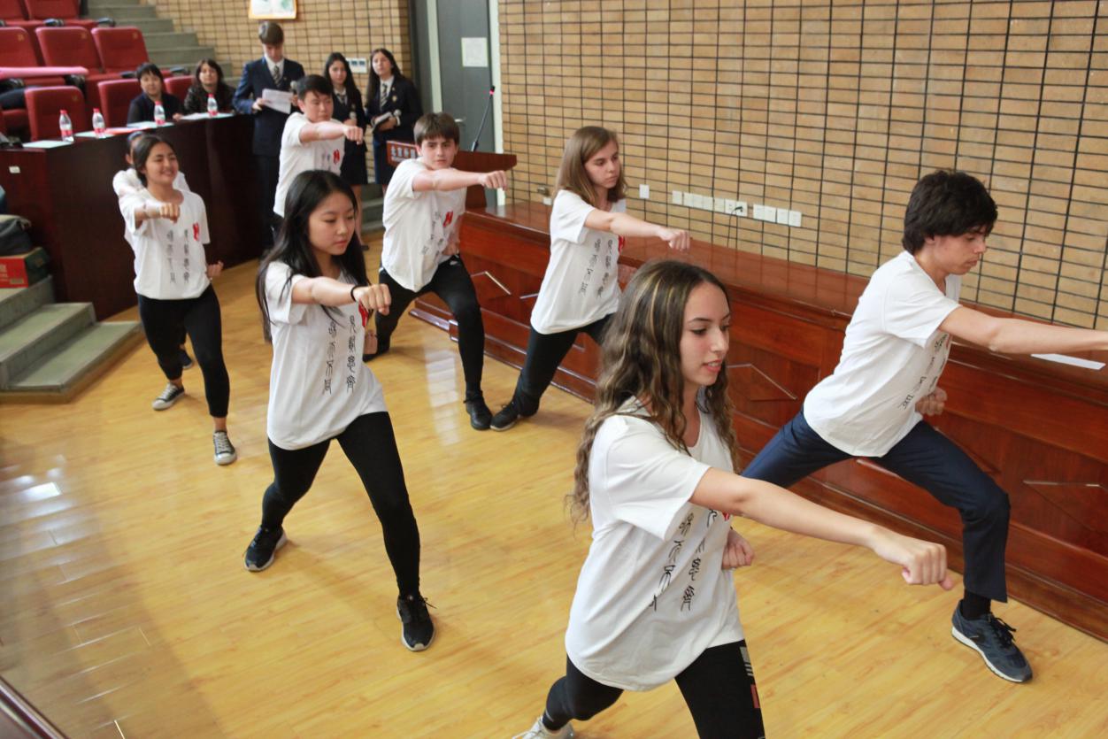 此环节由罗马夏令营的学生主持,三人一唱一和,进行的十分顺利,引得现场老师与学生频频鼓掌。