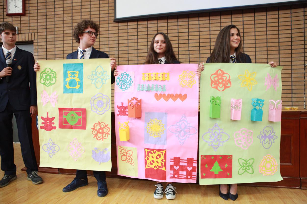 首先是剪纸与国画展示,同学们的作品十分精美,现场老师发出阵阵感叹。