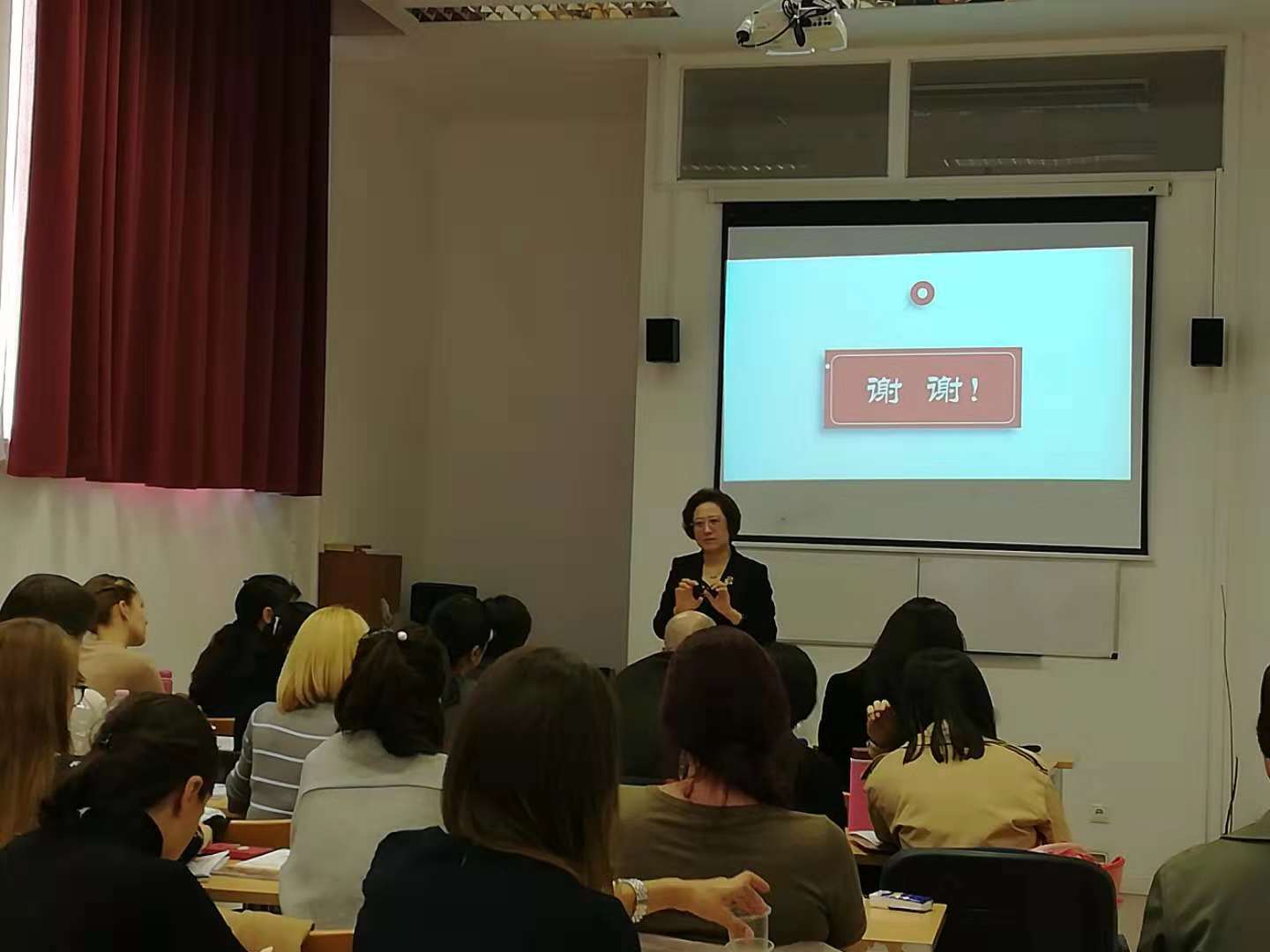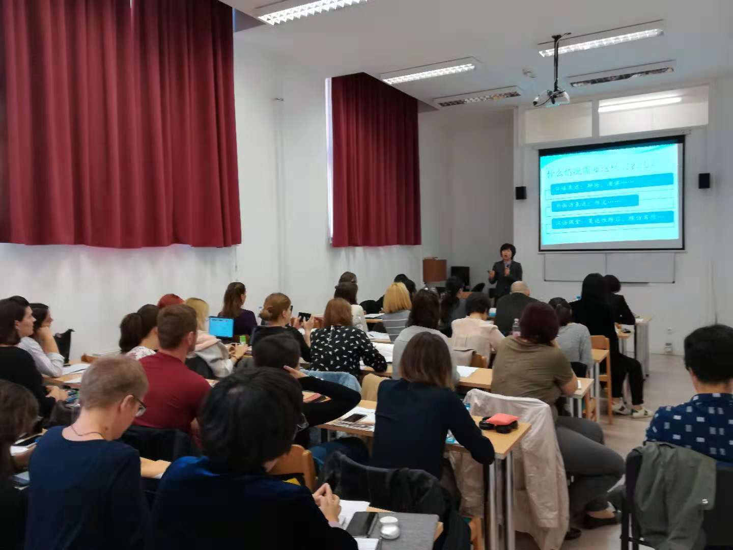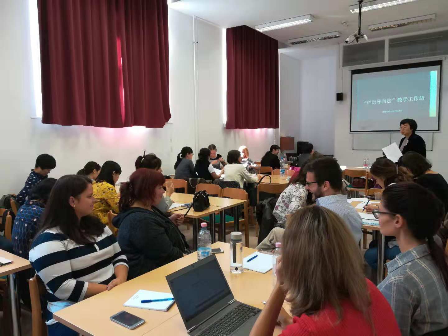 10月4日至8日,beat365中文官方网站执行院长张晓慧率领汉语国际教育专家团队,访问匈牙利罗兰大学孔子学院,参加中东欧本土师资培训,以“产出导向法”在汉语教学中运用为主题,举办了专题讲座和工作坊。来自中东欧16国的30余位本土教师及孔院的部分汉语教师和志愿者参加培训。