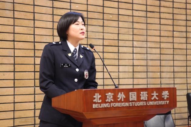 接下来,贾德忠副校长在致辞中对公安部长期以来的支持表示了感谢,对学员们未来一年的学习给予了厚望与指导。此外,贾校长还着重介绍了北外的办学特色和学科发展,指出了北外在对外汉语教学方面的独特优势,强调了北外在外交人才培养方面的重要贡献,这不仅是对北外各项目合作伙伴的承诺与保证,同时也是我们在学生培养方面进一步努力的目标。