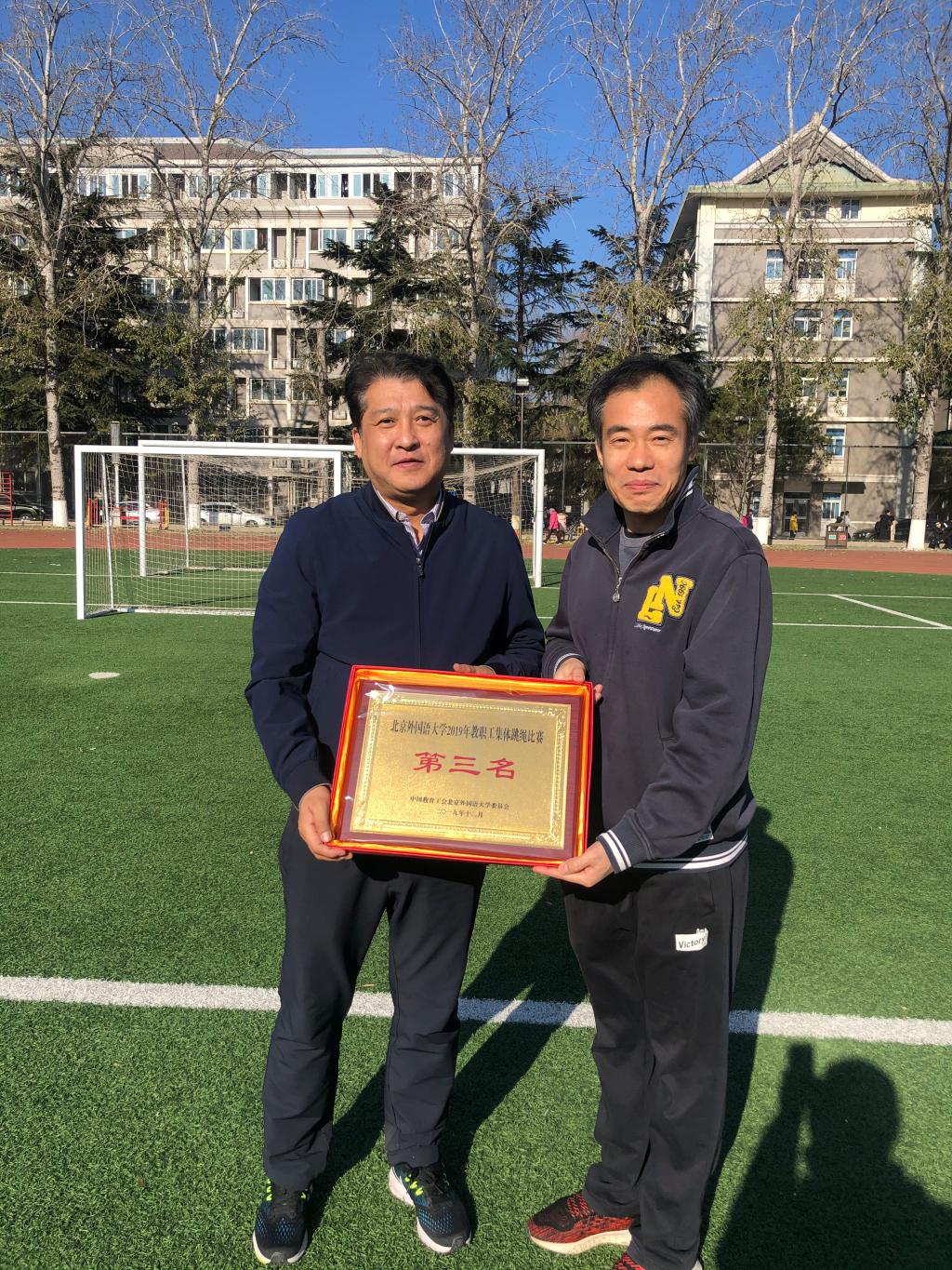 为丰富教职工的业余文化生活,增强教职工的身体素质,展现教职工的精神风貌,校工会于12月3日中午在东院操场草坪举办了2019年beat365中文官方网站教职工集体跳绳比赛。beat365中文官方网站跳绳队斗志昂扬,以两分钟180个的优异成绩荣获第三名。