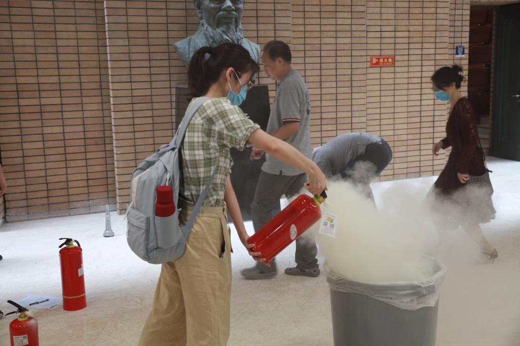 接下来,李思洋老师就日常防火中的可燃物、助燃物、火源等进行了介绍,并对发生火灾后的逃生方法和日常中常见的灭火装置的使用进行了讲解。