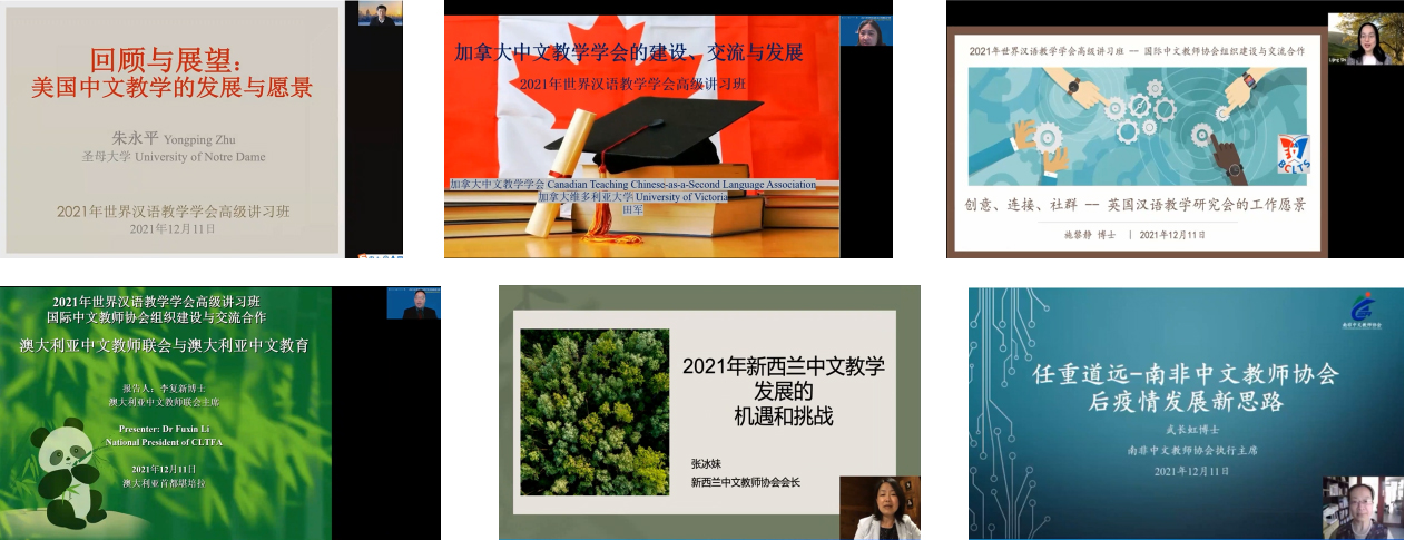 为支持海内外一线教师、专家学者发起建设社会团体组织,加强国际中文教师协会组织的交流合作,世界汉语教学学会与亚太地区汉语教学学会合作,于2021年12月11日举办了“2021年世界汉语教学学会高级讲习班”,讲习班的主题为“国际中文教师协会组织建设与交流合作”,由世界汉语教学学会、亚太地区汉语教学学会主办,beat365中文官方网站beat365中文官方网站承办,《国际中文教育(中英文)》期刊编辑部协办,通过线上线下相结合、录播与直播相结合的方式举行。本次讲习班邀请了美国、英国、加拿大、澳大利亚、新西兰、南非等六个英语为主导语言国家的中文教师协会负责人进行专题报告,并举办圆桌论坛,邀请上述各国代表和中国天津、安徽、陕西等地的国际中文教育组织代表进行深入探讨。