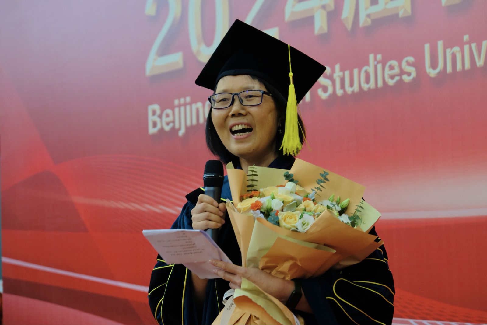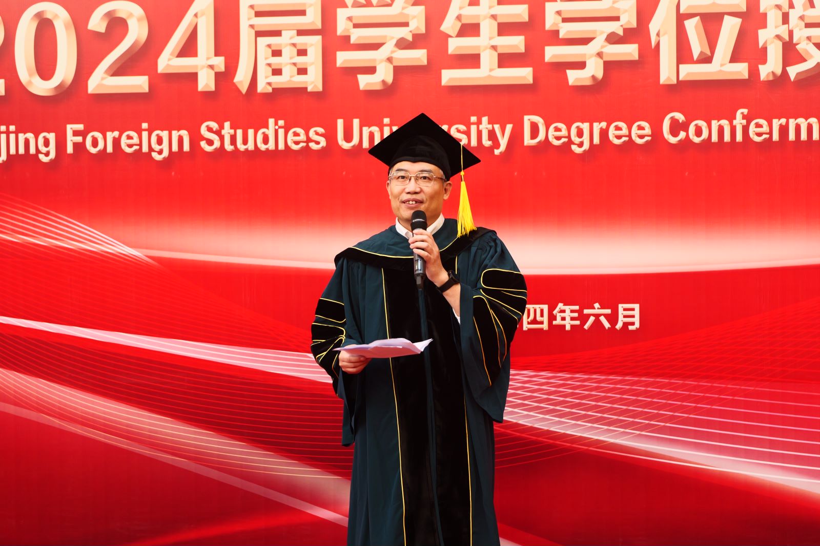 学院党总支书记何辉教授发表了致辞,祝贺所有毕业生顺利完成学业,迈向新的征程。何辉书记以“理想”为关键词,勉励同学们志存高远,不忘理想,拥抱梦想,希望同学们将在beat365中文官方网站学到的知识和本领用于实践,担当起青年责任,扬起青春的旗帜,永怀热血与激情,勇敢前行,将中国精神和中国理念传播到世界各地。
