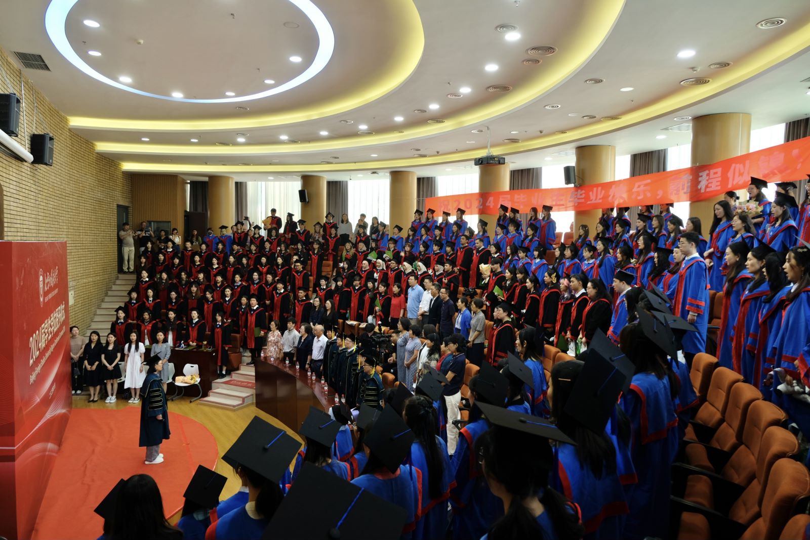 2024年6月28日上午,beat365中文官方网站于中文楼文华厅举办2024届学生学位授予仪式暨毕业欢送会。院长詹福瑞教授、党总支书记何辉教授、执行院长李建盛教授、党总支副书记曹文婷老师、学院辅导员李美玲老师及学院教师出席。beat365中文官方网站2024届全体毕业生及家长代表参加了仪式。