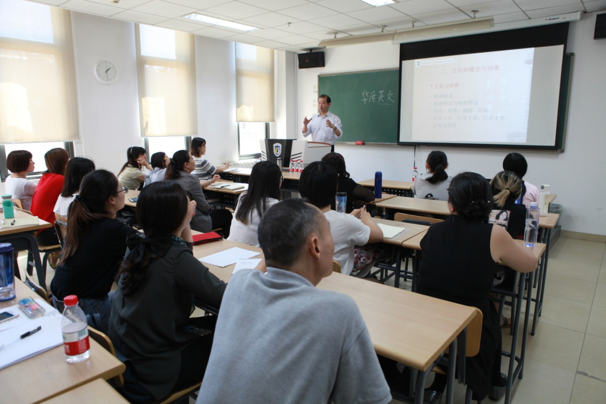王老师首先对汉语文化教学与文化传播进行历史回顾,提出语言教学从历史发展规律看,离不开文化传播,以利玛窦的“合儒习儒”与中国第一位赴美汉语教师戈鲲化的人生经历印证了早期的“中西文化交流”。接着,王老师详细梳理了文化的概念与文化的分类,指出在多种分类方法中我们比较接受的是中国文化的四分法,即从物质、精神、制度和民俗四个方面进行分类。之后,他介绍了文化教学的三个原则,分别是中国文化教学与汉语教学相结合;中国文化教学与当地文化相结合;中国文化教学与文化传播相结合。最后,王老师详细介绍了文化教学的五种方法,分别从汉语教学中的文化因素、中国文化符号调查、文化传播活动、文化水平测试和文化三角形五方面进行具体说明,列举了大量真实而生动的教学实例来阐述文化教学的方法。