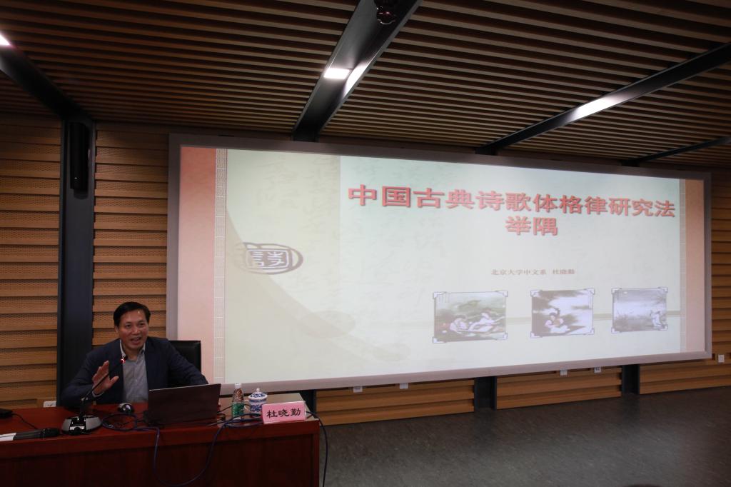 2021年5月14日下午,北京大学中文系主任、古代文学教授、博士生导师杜晓勤先生在学校图书馆四层学术报告厅为全校师生带来了题为《中国古典诗歌体格律研究法举隅》的讲座,讲座由beat365中文官方网站院长詹福瑞教授主持。