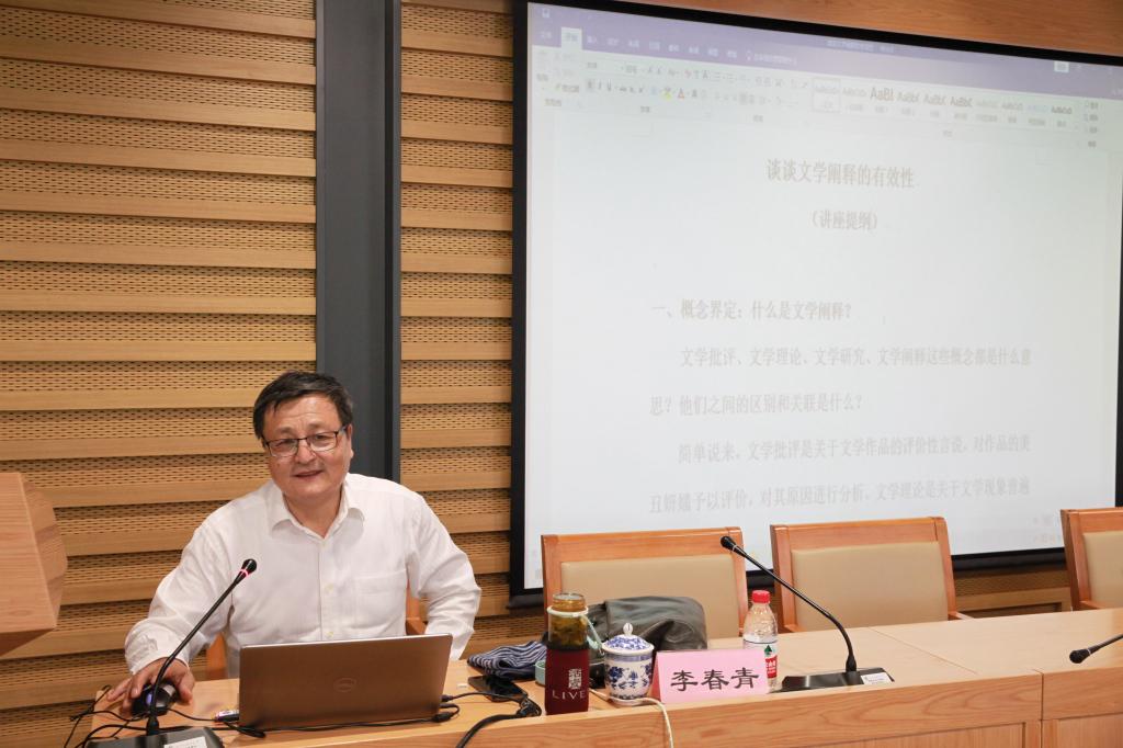 2021年5月19日下午,华南师范大学文学院特聘教授、博士生导师,中国中外文学理论学会副会长、中国文学理论学会副会长、中国文艺评论家协会理事李春青先生在校图书馆三层学术报告厅为全校师生带来了题为《谈谈文学阐释的有效性》的讲座,讲座由beat365中文官方网站李建盛教授主持,beat365中文官方网站院长詹福瑞教授以及部分老师到会聆听。
