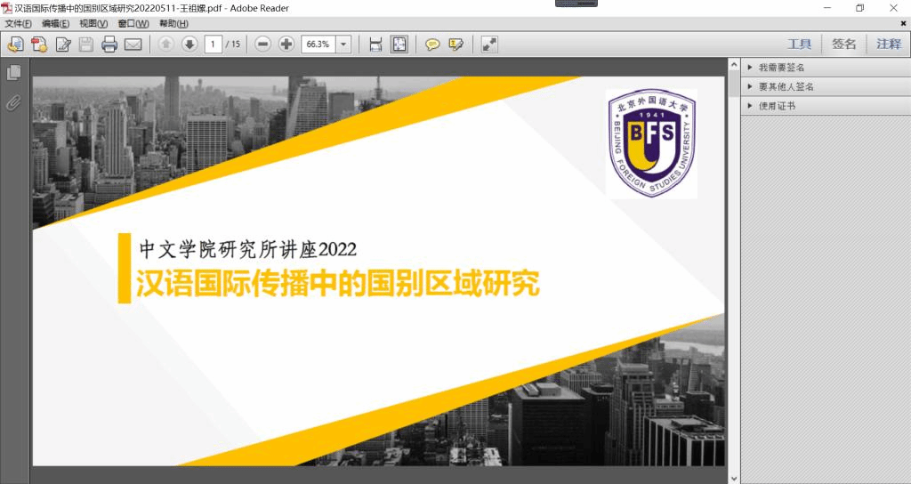 讲座伊始,王老师先从地理、语别、文化、组织等多个角度阐释了区域的概念,接着就区域国别研究中的主要问题进行了梳理。这些问题具体且全面,为师生未来的科研选题提供了思路。王老师在讲座中特别强调了选题的创新性问题,并对如何进行创新进行了阐述。她认为,选题应该紧密围绕服务国家战略发展的主线,同时要关注国别中文教育的新类型、新模式、新现象的产生与发展,要坚持系统观,分析问题点面结合。此外,王老师还就区域国别中文教育中的研究方法、区域国别中文教育研究的写作范式进行了介绍。通过对大量国别研究报告的写作体例的分析,总结出国别报告的“五步”写作法。最后,王老师以一份国别中文教育发展报告为例进行了具体讲解。