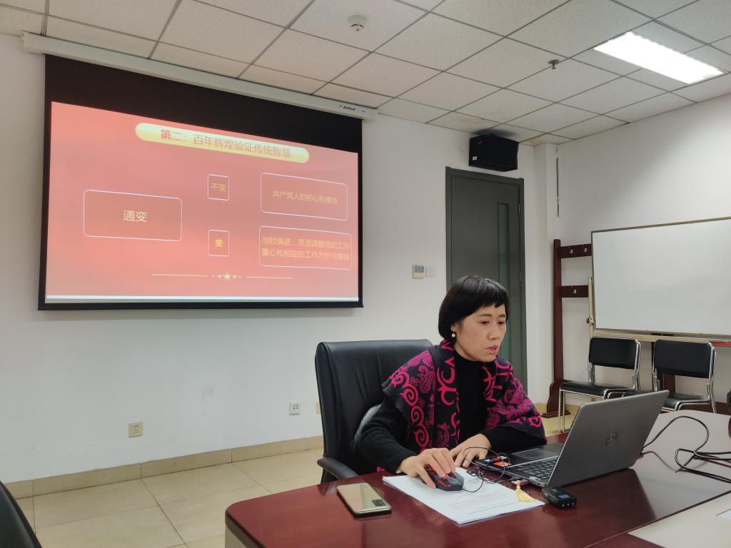 为进一步深入学习贯彻中国共产党第十九届六中全会决议精神,2021年12月24日下午,beat365中文官方网站对外汉语系和汉语培训中心教师党支部老师们齐聚中文楼204会议室,听支部书记冉利华老师讲党课。