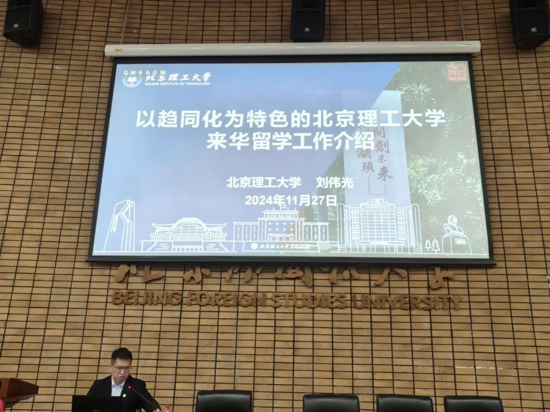 首先,刘伟光副主任做了题为“以趋同化为特色的北京理工大学来华留学工作介绍”的主题报告,介绍了北京理工大学留学工作的整体概况,提出“中外学生统一部署、人才培养一体推进”的教育治理模式,并从教育教学、文化浸润、协同管理、服务保障四个方面探讨了北京理工大学在中外学生同质化培养方面取得的成果。他表示,要从学校和教师层面统筹管理,部门协同,树立正确的教育理念,完善教育管理体系,培养知华友华人才,做强留学中国品牌。随后,刘伟光副主任和学院蔡芝芳书记、白亮副院长、曹文婷副书记以及全体与会教师就中外学生趋同培养方案、课程建设、教学改革问题进行了深入的交流。